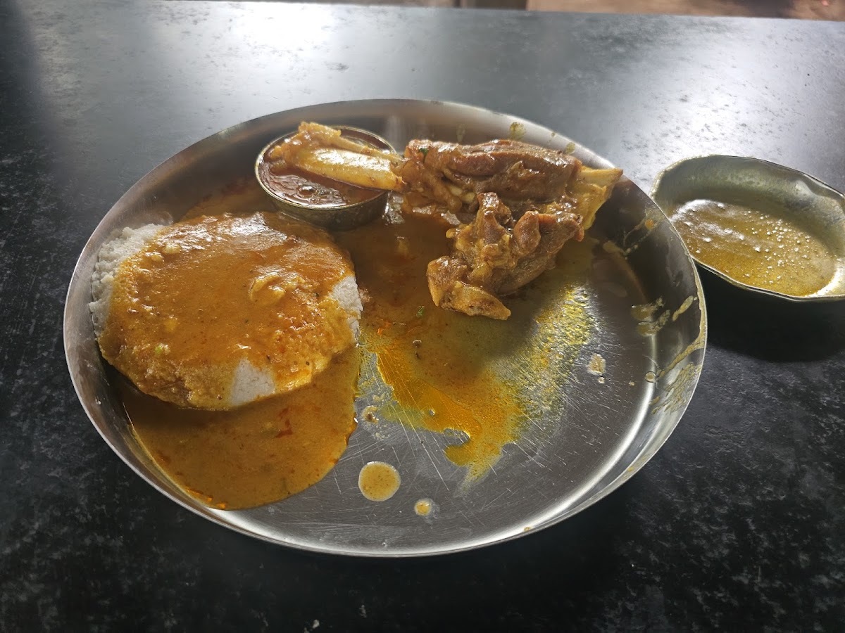 My favorite place for a spicy, lip smacking mutton curry. I used to eat here regularly when I used to live in Mysore years ago. I went here again after years, and mutton curry is exactly how I can remember it, the curry/gravy is beyond amazing, loved the heat, the mutton broth flavor. The mutton was cooked perfectly too, moist and soft! I missed pairing it with the Thatte Idly as I went there by 12 noon, but do go in the morning and pair it with the Thatte Idly. I also tried their chicken curry, it’s a great option only if you don’t eat mutton! Because the mutton curry is supreme! If you find value in my reviews, do follow me :) Instagram | TikTok | YouTube - @justfordrools