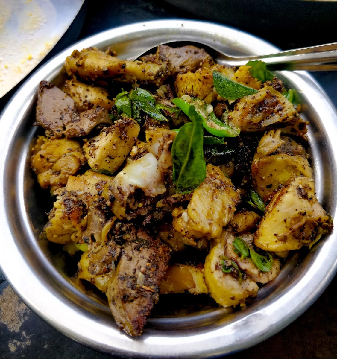 The experience at New Gauri Shankar is defined by the array of thoughtful, village-style mutton dishes offered throughout the day. The air carries a hint of spices warming in the pan, a scent that blends the earthiness of ragi with the sharp, inviting aroma of pepper and fresh herbs. Whether it’s the tender mutton chops paired with the traditional ragi mudde or the punchy, pepper-accented chicken dry fry, each bite speaks of skill honed through years of intimate culinary knowledge passed down in local kitchens.